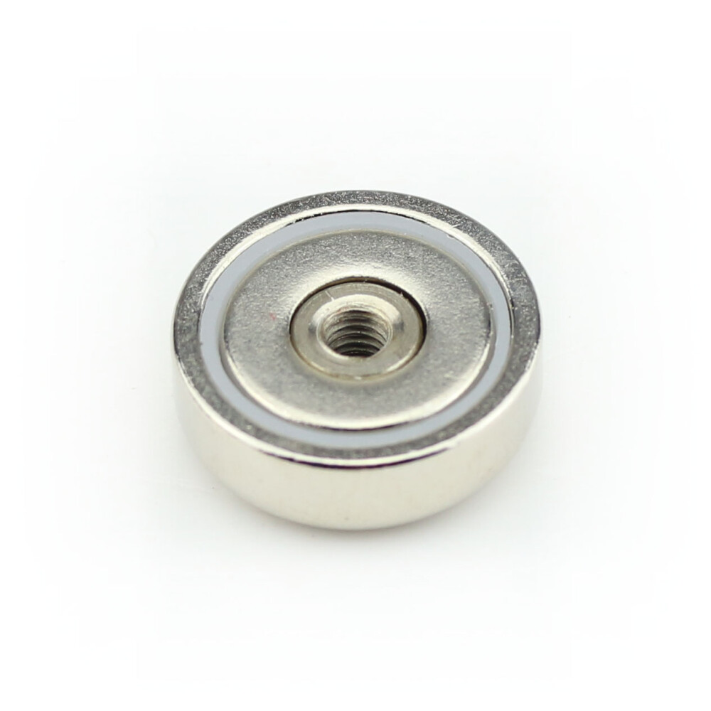 Pritrdilni magnet premera 20 mm in višine 7 mm, z navojem M4 za enostavno pritrditev.